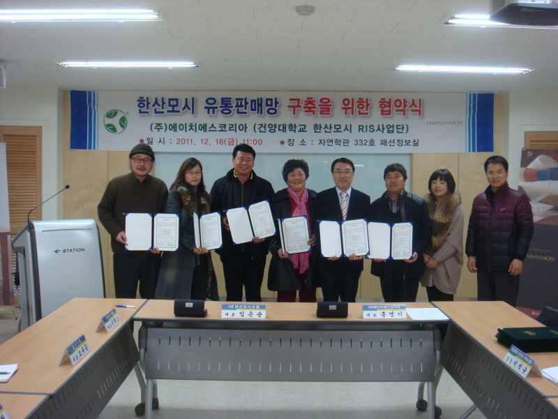 한산모시 유통판매망 구축 협약식 - 일시/장소 : 12.16(금) 11:00 / 자연학관 332호 - 내용 : 서천한산식품 외 4개 기관과 유통협약