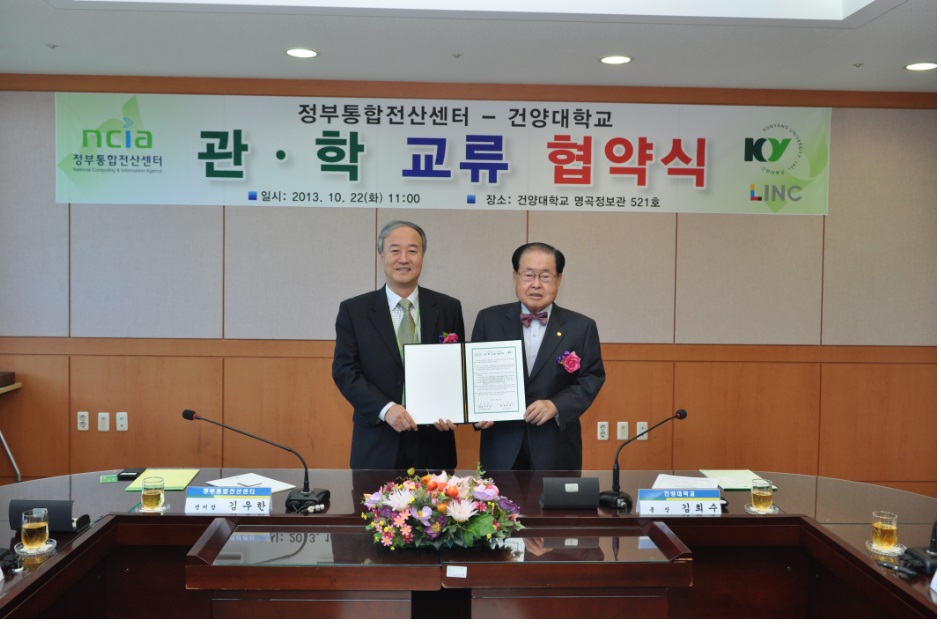 정부통합전산센터와 건양대학교 협약체결- 일시 : 2013.10.22(화) 11:00- 장소 : 건양대학교 명곡정보관 521호