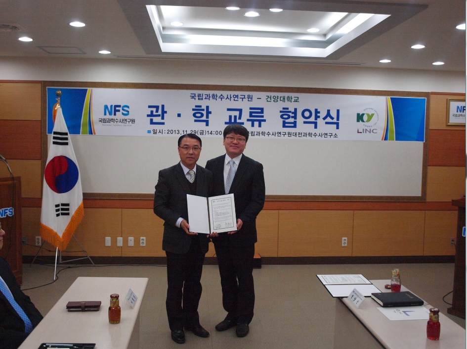 국립과학수사연구원 대전과학수사연구소와 건양대학교 협약체결- 일시 : 2013.11.29(금) 14:00- 장소 : 국립과학수사연구원 대전과학수사연구소 회의실