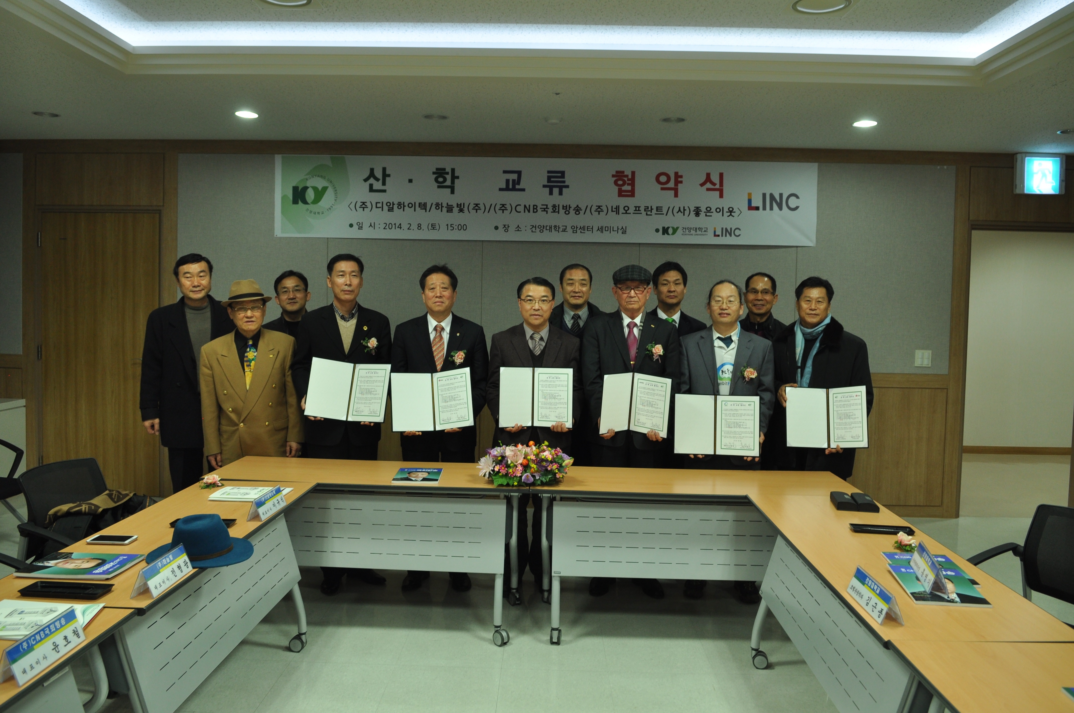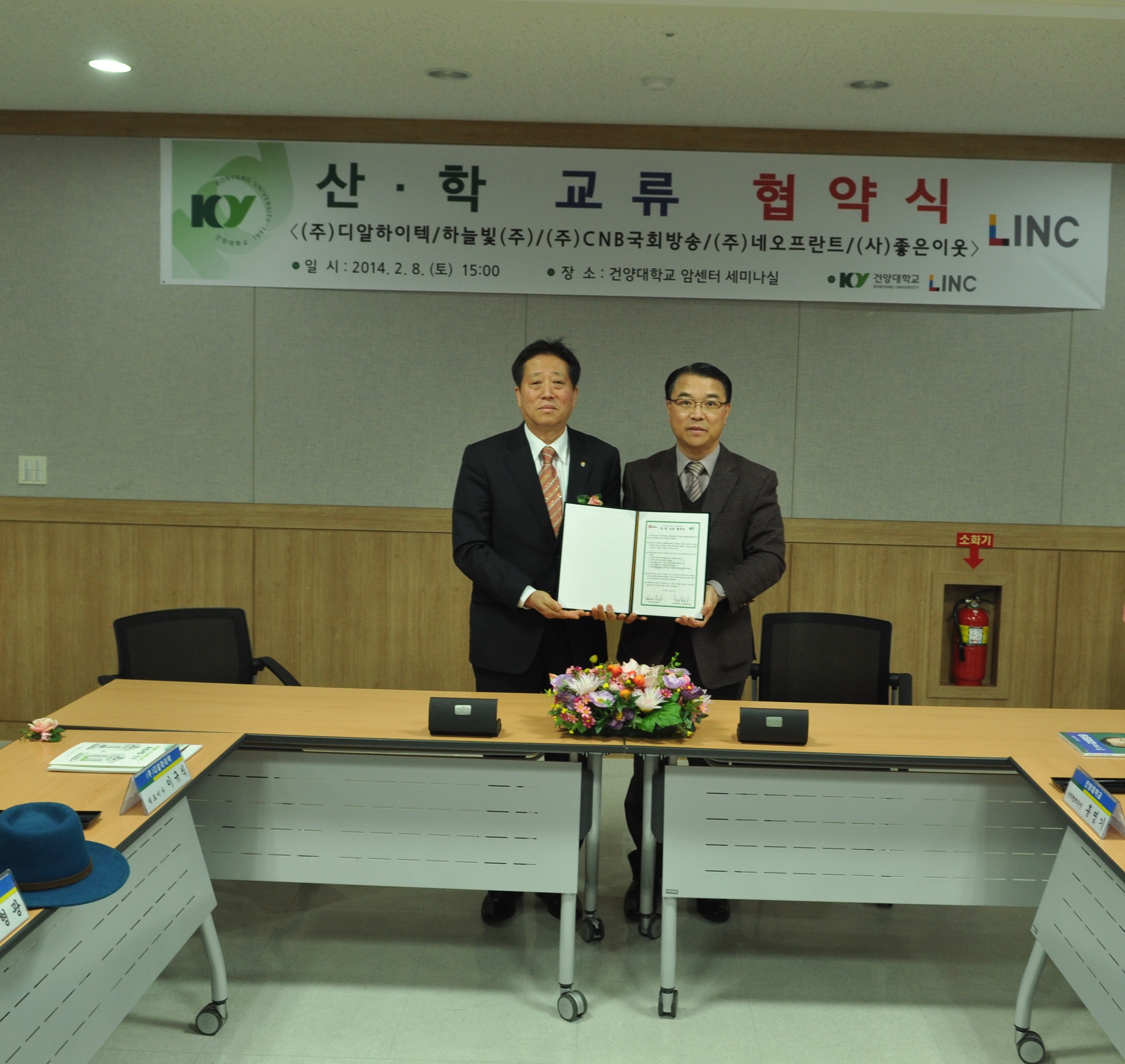 (주)네오프란트와 건양대학교 협약체결- 일자 : 2014.02.08(토) - 장소 : 건양대학교 암센터 세미나실 - 협약내용 : 1. 관력학과 학생의 현장실습지원 및 취업연계 지원 2. 산업정보 및 학술정보의 상호교환 3. 정책자문, 공동연구 등 양 기관의 발전에 필요한 사항 4. 공동 관심분야의 연구개발 및 기술 이전 5. 산학협력을 통한 양 기관의 사업 참여 협조 및 인적교류 확대 |