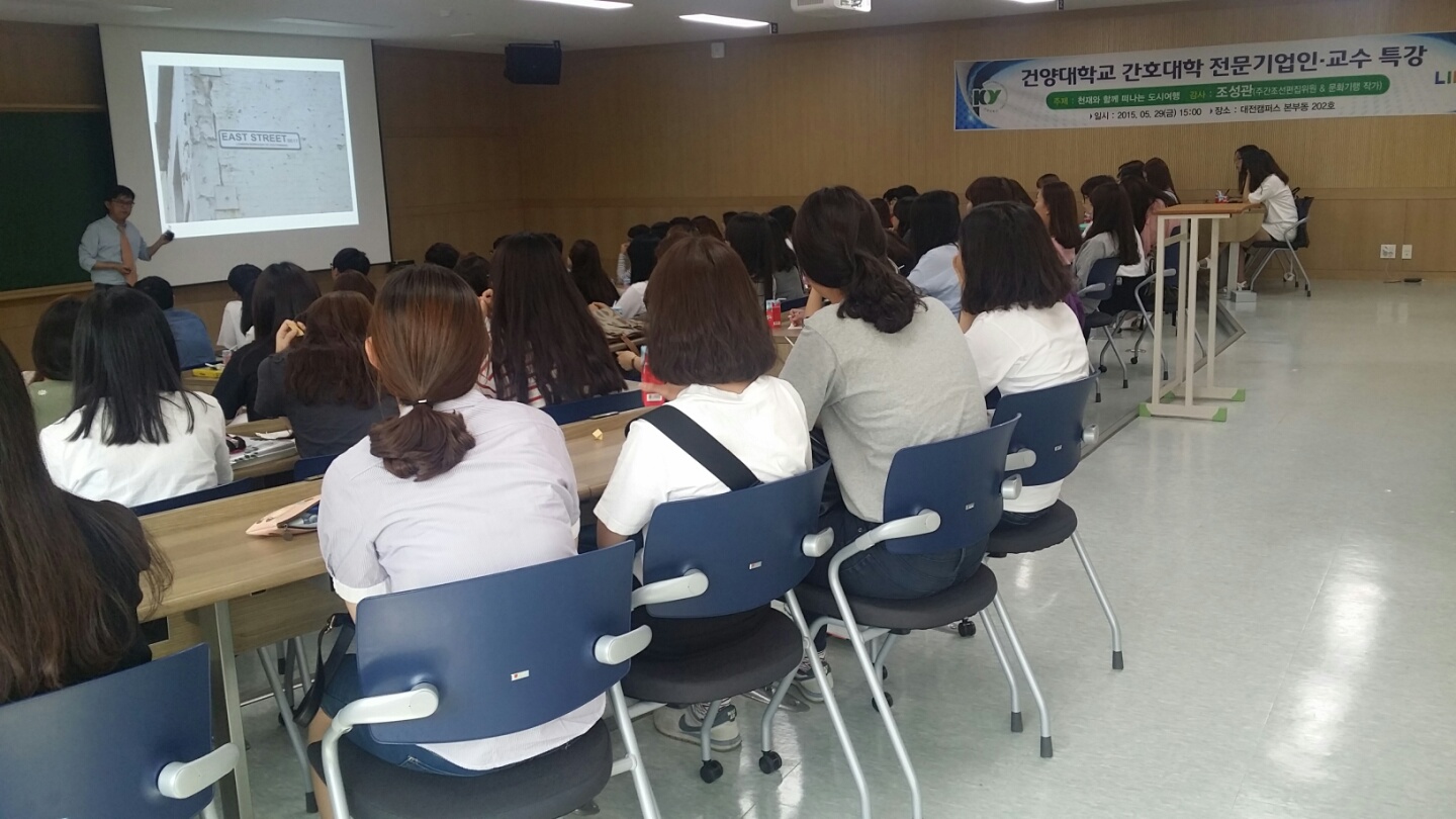 2. 장소 : 대전메티컬캠퍼스 본부동 202호 3. 참석인원 : 90명 4. 강사현황 : 주간조선 편집위원 조성관 5. 강의주제 : 천재들과 함께 떠나는 도시여행 |