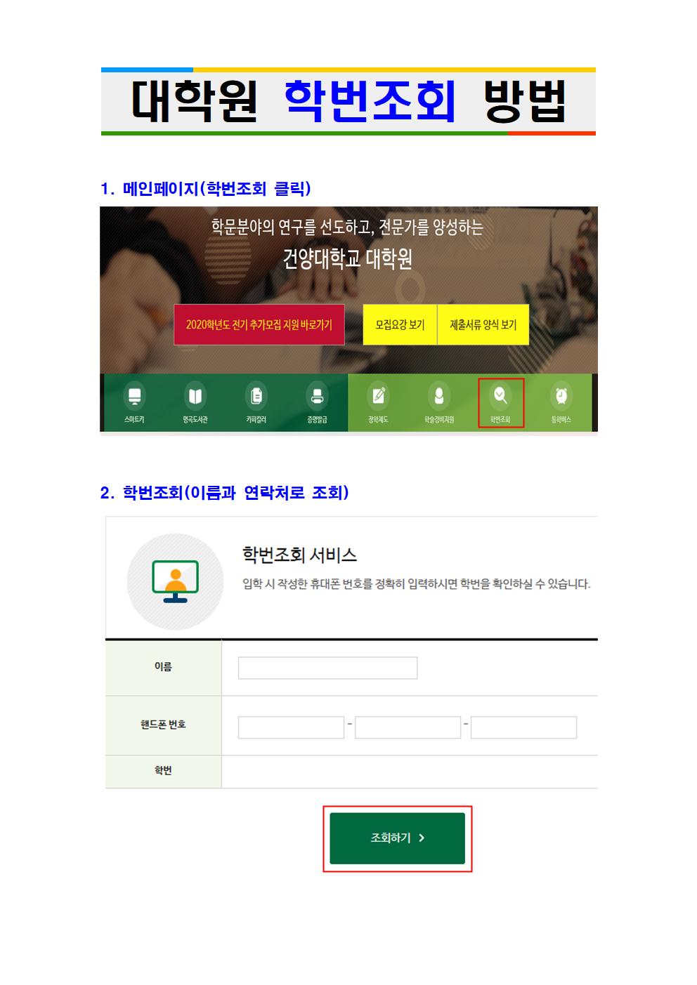 ▣ 학번조회 : 대학원메인홈페이지 -> '학번조회'클릭 후 조회 ▣ 수업시간표 : 각 대학원별 게시판("2020-2학기 수강신청 안내 및 수업시간표(일부수정) 공고") 참조