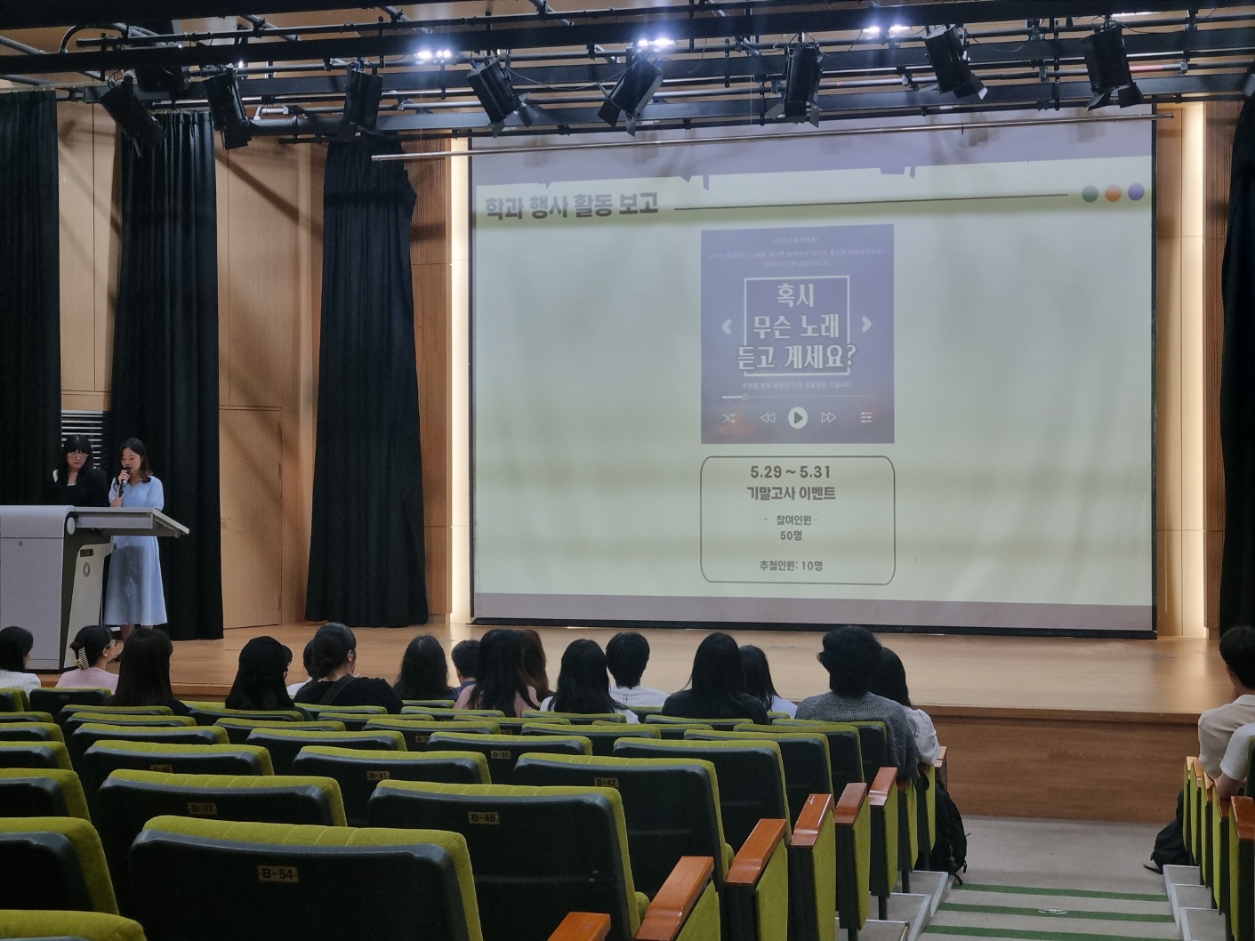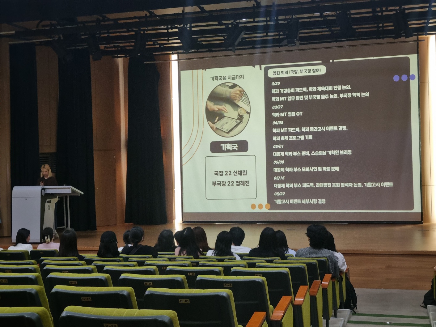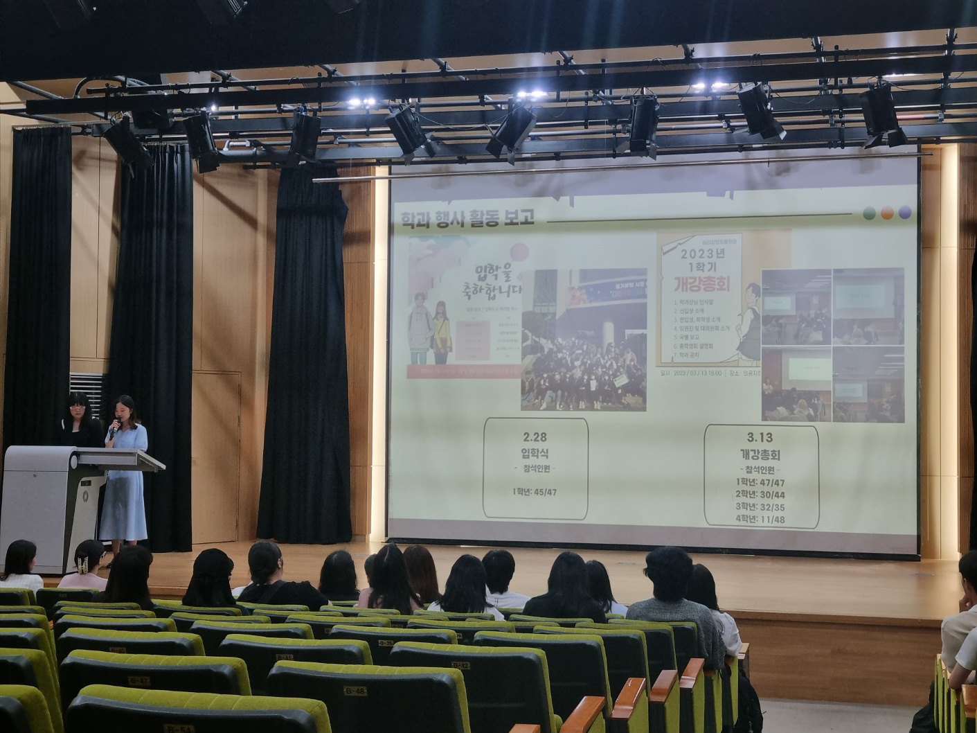 이번 종강총회에서는 학과 신문 배부, 학과 행사활동 보고, 국별보고, 대의원 활동 및 감사보고, 학과 공지를 들었습니다. |