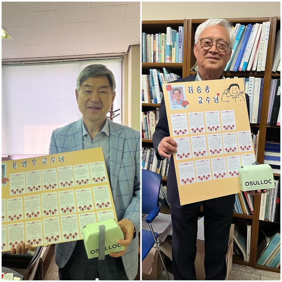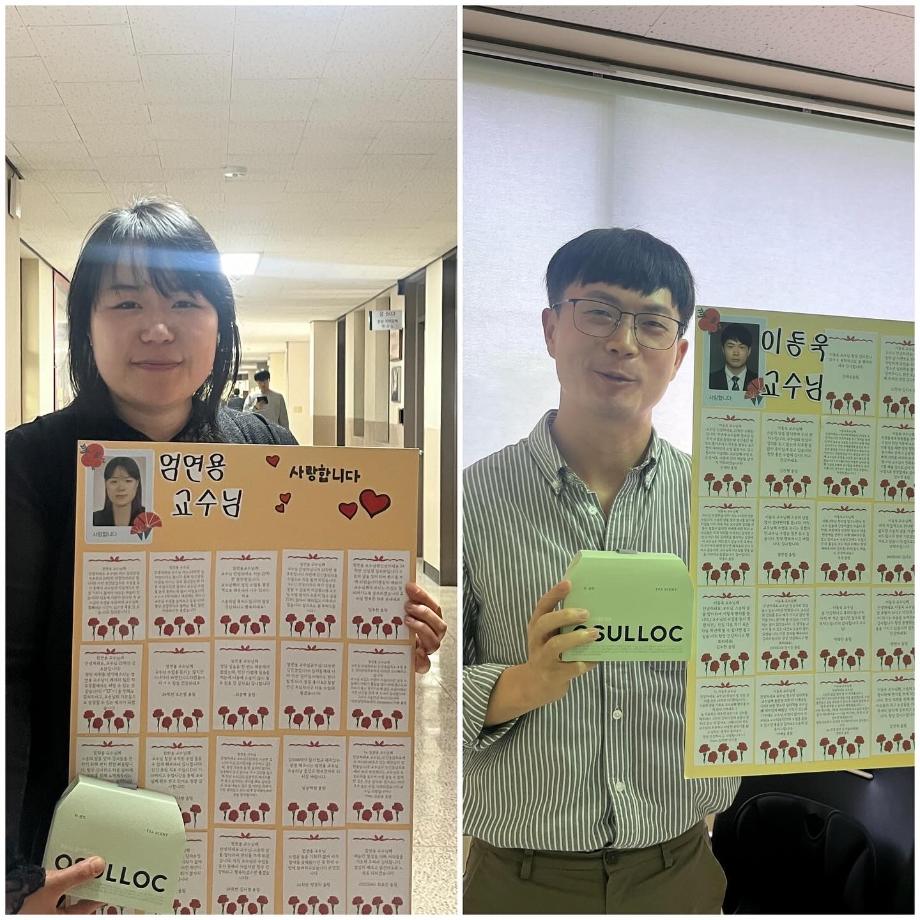 ♡2024 심리상담치료학과 스승의 날♡ 2024.05.15. 스승의 날을 맞아 교수님들께 선물과 편지 전달 이벤트를 준비했습니다~^^ 학우분들께서 작성해주신 편지를 전달받아 판넬에 꾸민 뒤 교수님들께 전달해드렸습니다♡ |