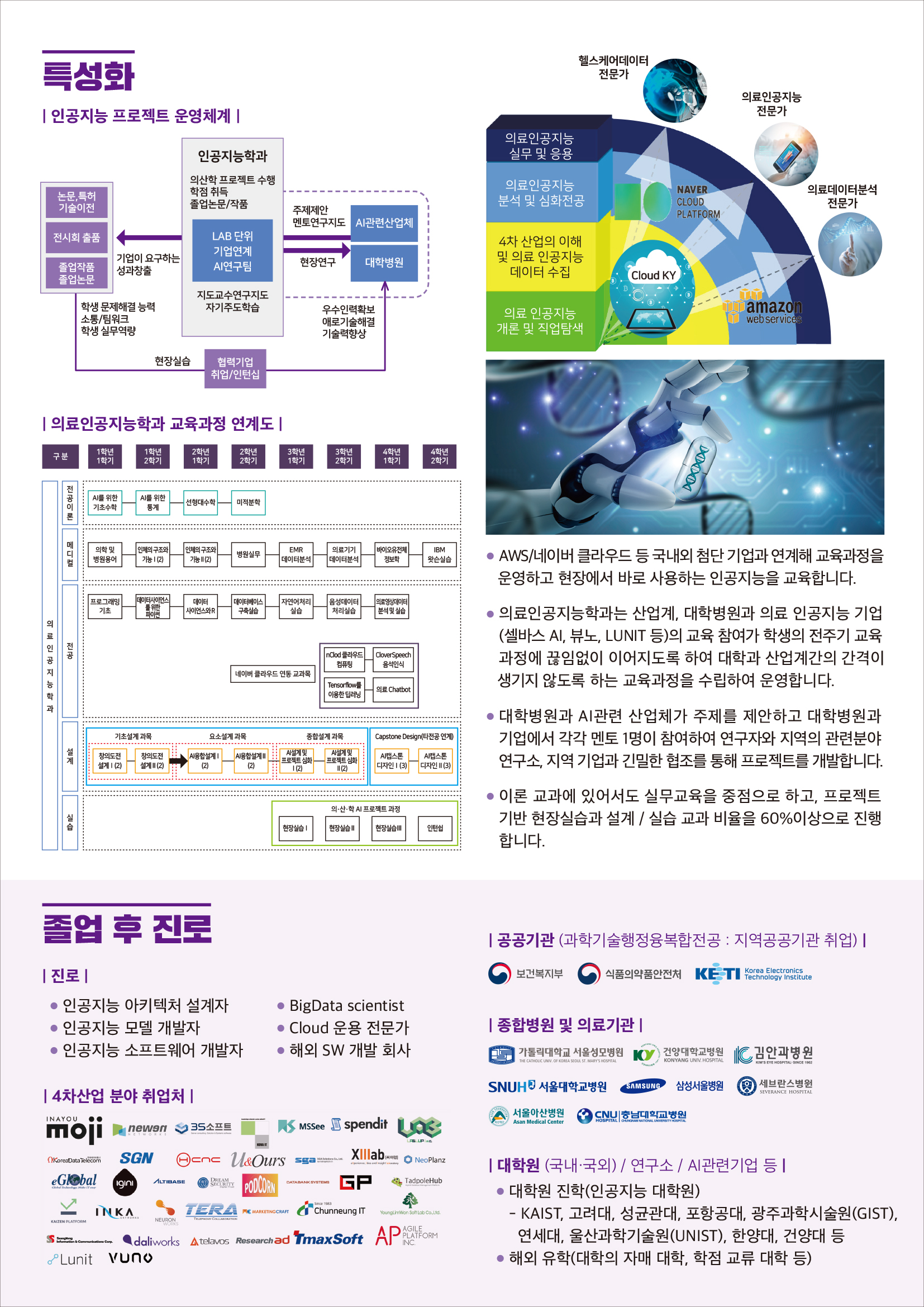 『 의료인공지능학과 홍보 자료 』글의 상세내용을 확인하는 표로 제목, 부서명, 등록일, 조회, 첨부, 내용으로 나뉘어 설명합니다.