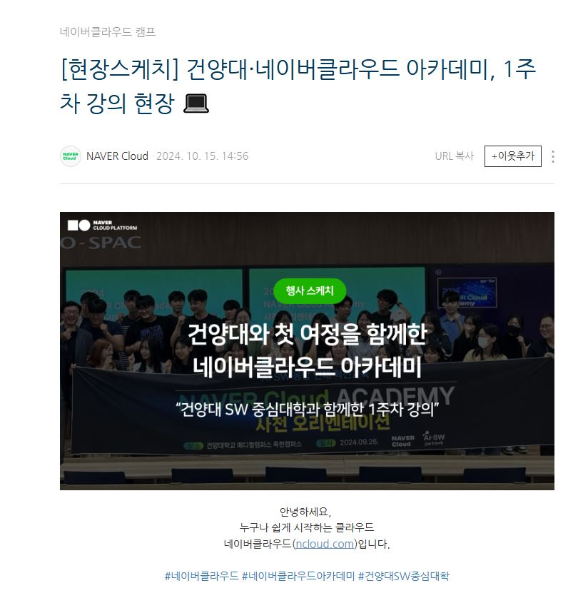 제목 [네이버클라우드 블로그] 건양대, 네이버 클라우드 아카데미 강의 현장 속으로