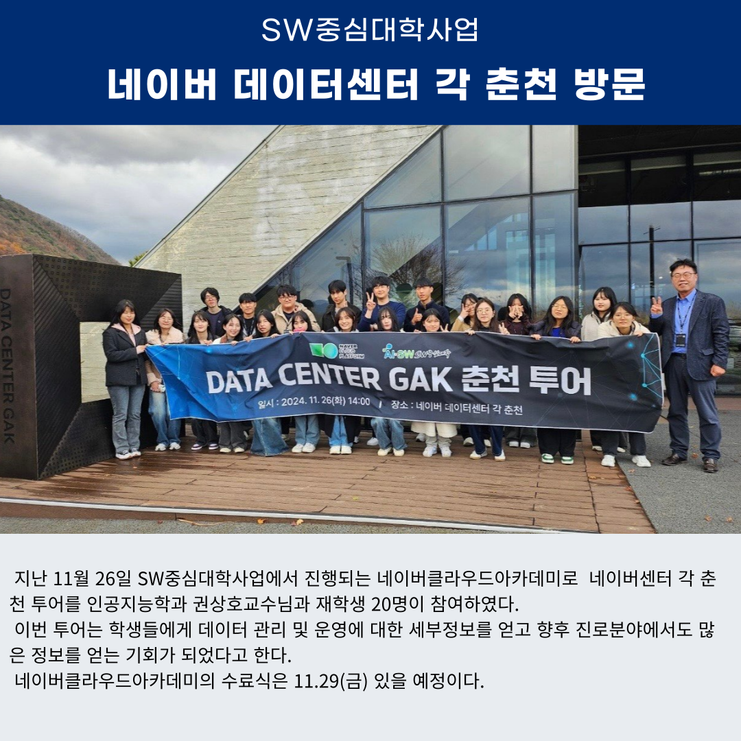 『 [SW중심대학] 네이버 데이터각 춘천 방문 』글의 상세내용을 확인하는 표로 제목, 부서명, 등록일, 조회, 첨부, 내용으로 나뉘어 설명합니다.