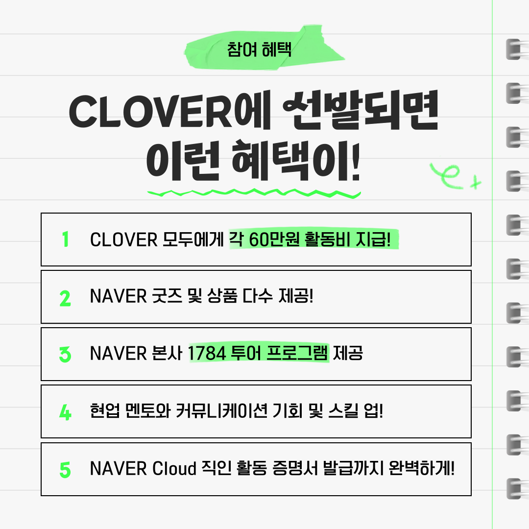 『 NAVER Cloud CLOVER 모집 』글의 상세내용을 확인하는 표로 제목, 부서명, 등록일, 조회, 첨부, 내용으로 나뉘어 설명합니다.