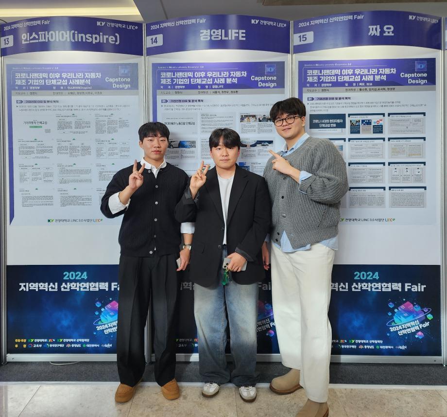 | 제목 | 2024 지역혁신 산학연협력 Fair 경영학부 '장려상' 수상 | ||||
