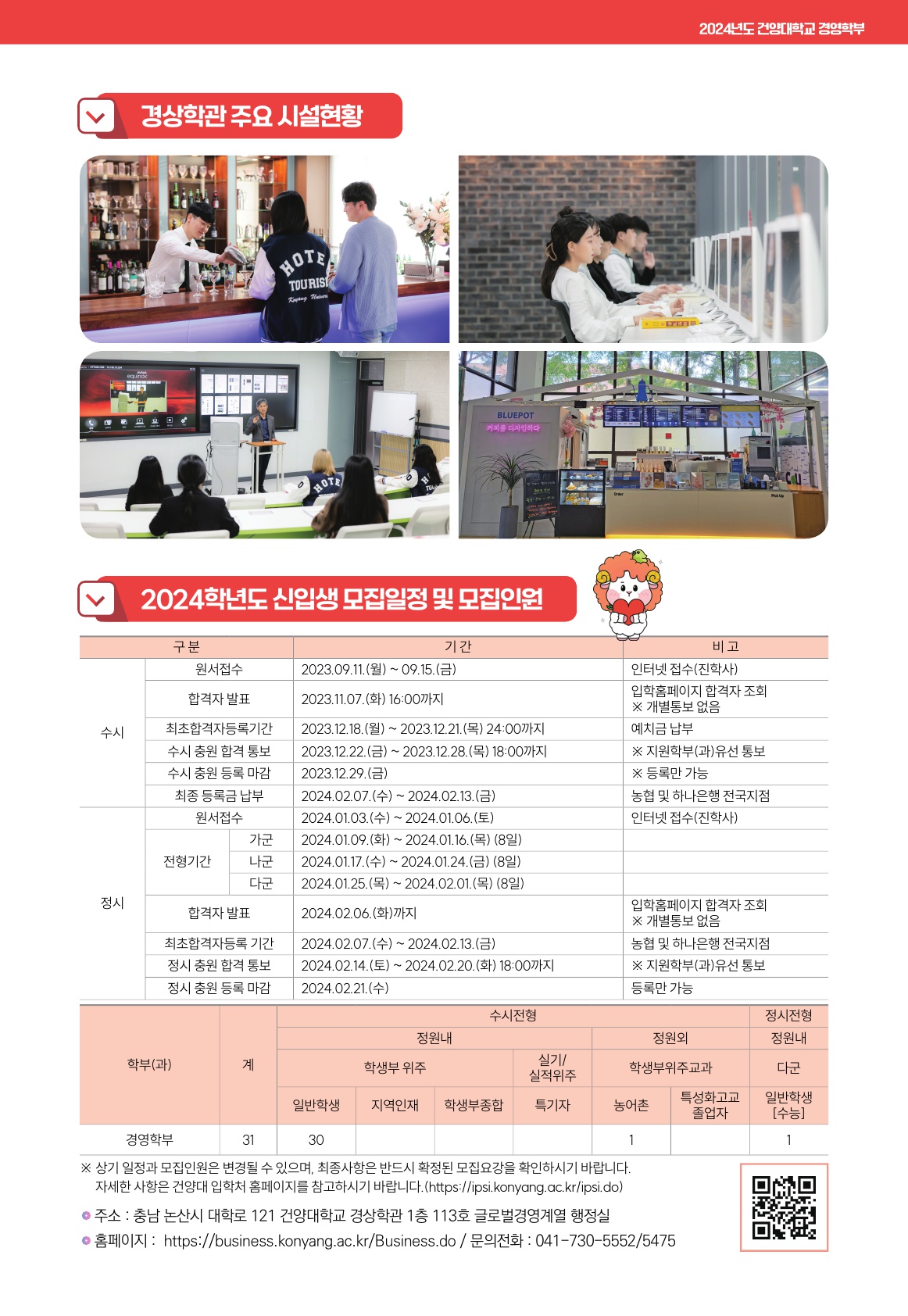 『 [안내] 2024학년도 경영학부 입시 브로슈어 』글의 상세내용을 확인하는 표로 제목, 부서명, 등록일, 조회, 첨부, 내용으로 나뉘어 설명합니다.
