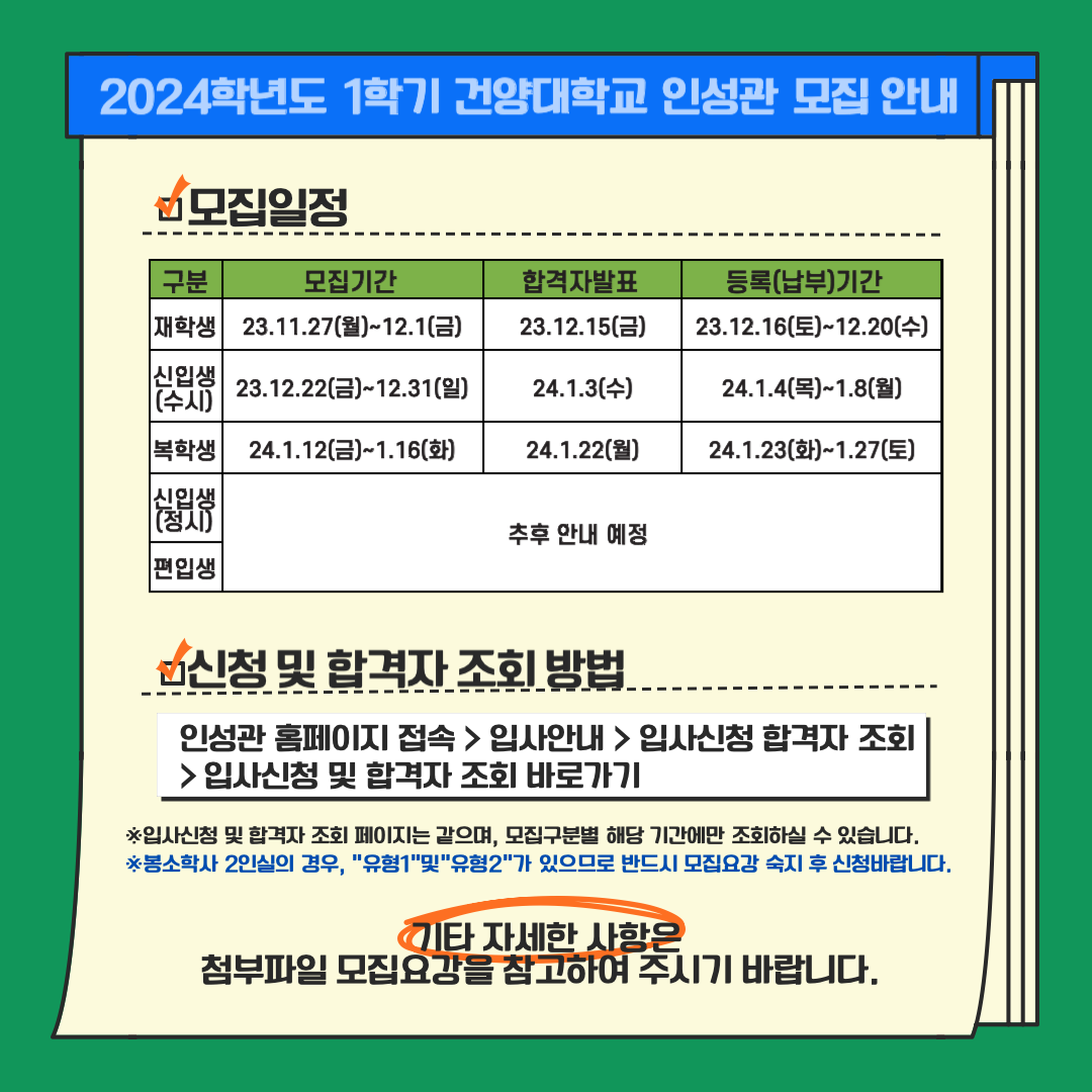 (붙임) 2024학년도 1학기 인성관 정기 입사 모집요강.pdf