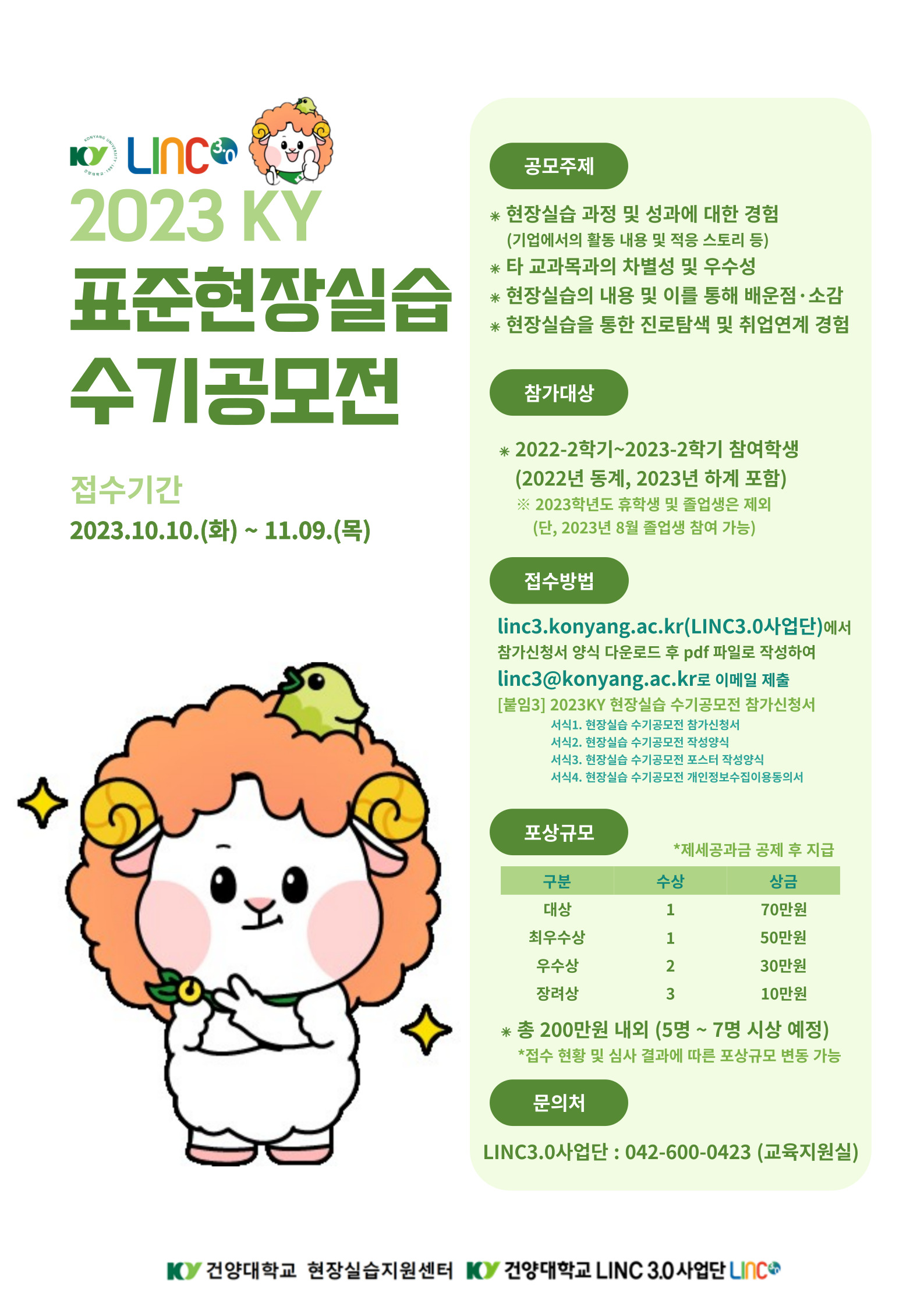 | 제목 | 2023 KY 표준현장실습 수기공모전 개최 안내 (~11.09.) | ||||