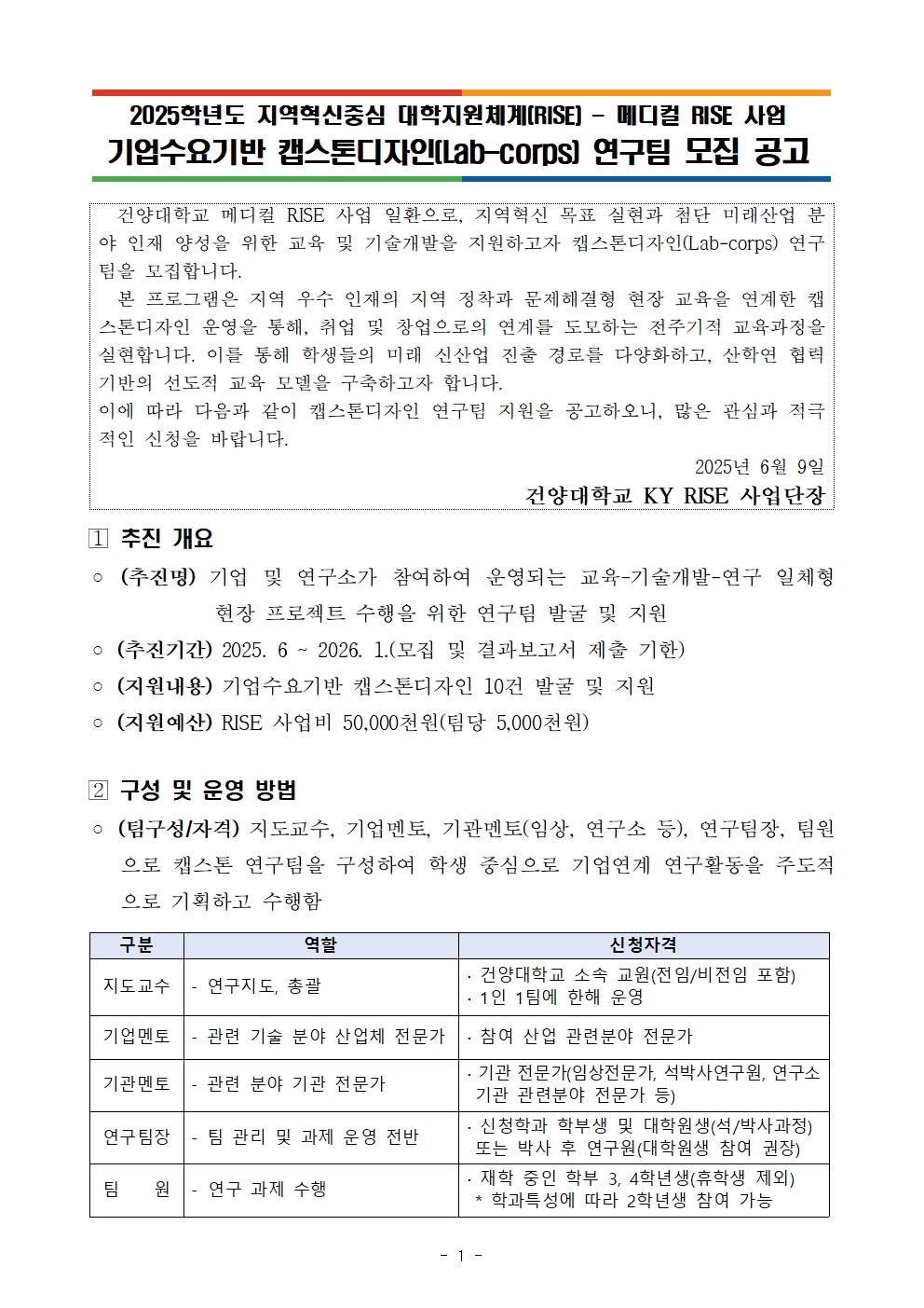 2025학년도 기업수요기반 캡스톤디자인(Lab-corps) 모집 공고(수정).hwp