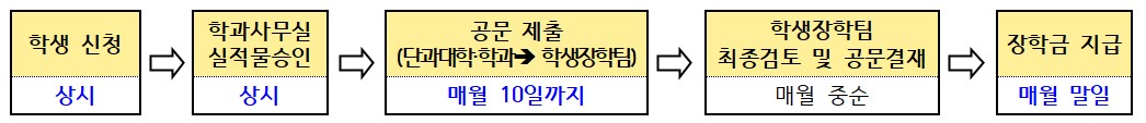 1. 장학종별 확인 : 대학생활 – 장학안내 – 장학금 지급기준 – 교내장학금 – 복지장학금
