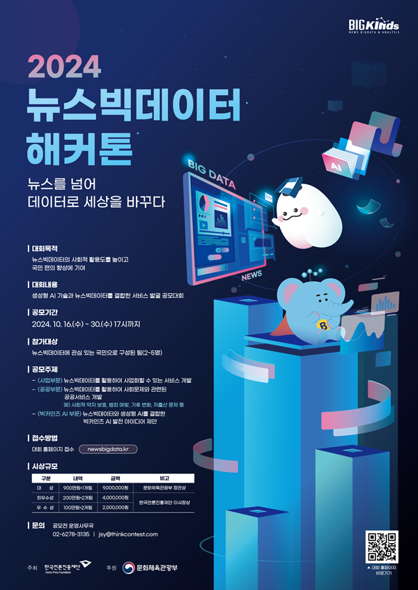 『 2024 뉴스 빅데이터 해커톤대회 』글의 상세내용을 확인하는 표로 제목, 부서명, 등록일, 조회, 첨부, 내용으로 나뉘어 설명합니다.