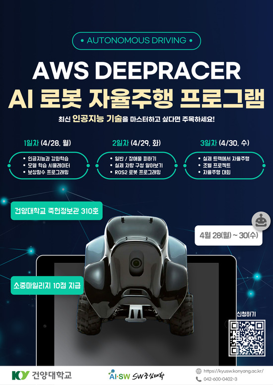 | 제목 | AWS DEEPRACER AI 로봇 자율주행 프로그램 신청 안내 | ||||