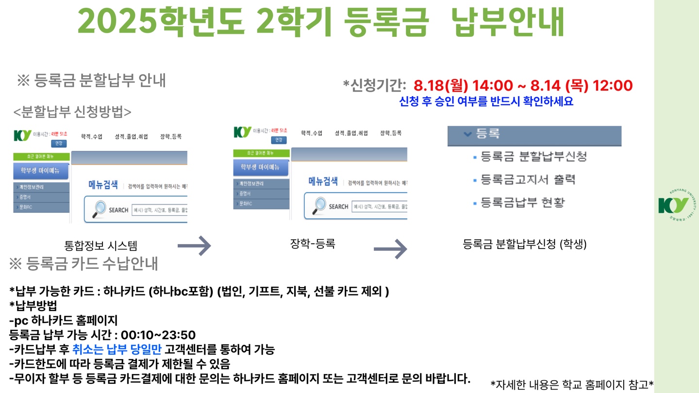 『 2025-2학기 등록금 납부 안내 』글의 상세내용을 확인하는 표로 제목, 부서명, 등록일, 조회, 첨부, 내용으로 나뉘어 설명합니다.